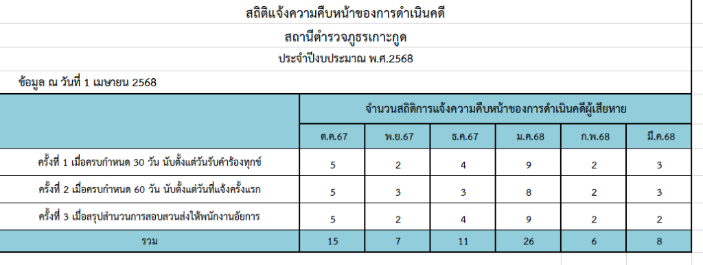 ข้อมูลสถิติแจ้งความคืบหน้าของการดำเนินคดี